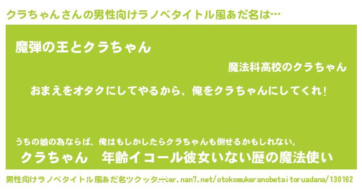 | 女子向けラノベタイトル風あだ名 | 『クラちゃん恋絵巻』 |