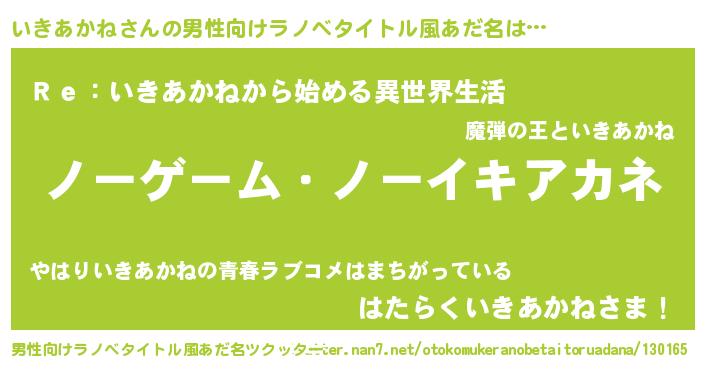 | ヒーロー風カッコイイあだ名 | 『天空の使者いきあかね』『仮面イキダー』 |