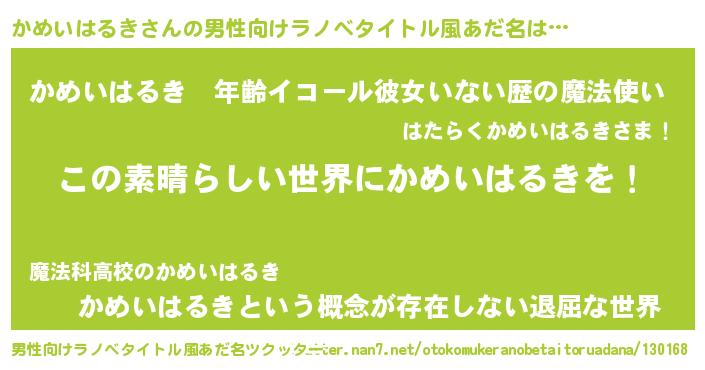 | 意味不明あだ名 | 『住所不定無職かめいはるき(77歳)』 |