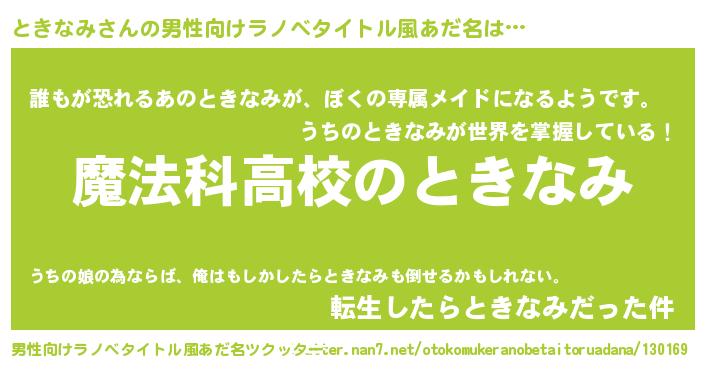 | 意味不明あだ名 | 『自称ときなみ』『永久保存ときなみ』 |