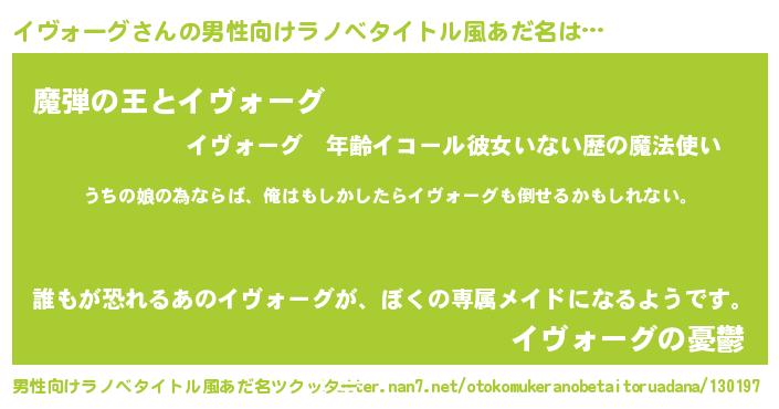 | 女子向けラノベタイトル風あだ名 | 『イヴォーグの婚約者』 |