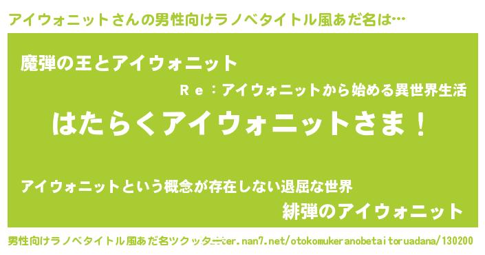 | 意味不明あだ名 | 『住所不定無職アイウォニット(93歳)』 |