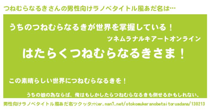 | 市区町村名 | 『名古つね市』『つね田谷区』 |