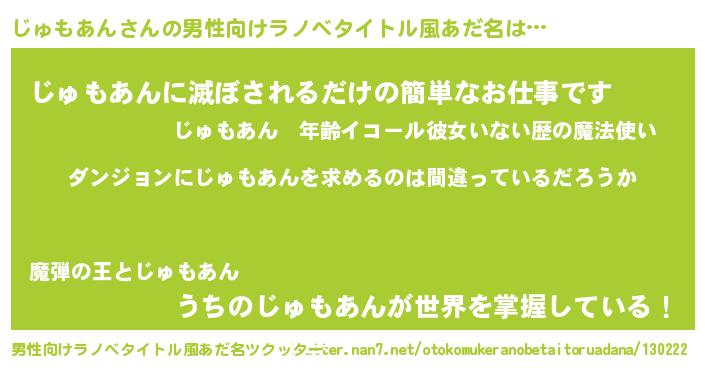 | 胡散臭い通販商品みたいなあだ名 | 『伝統あるサプリメント…その名も「じゅもあん」』 |