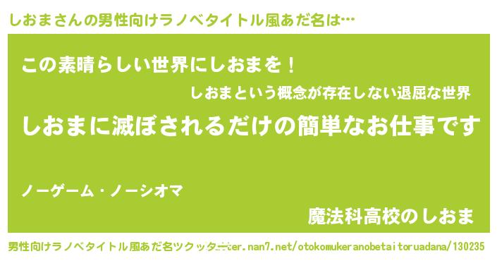| ヘコむあだ名 | 『しおま(遠い目)』『しおお』 |
