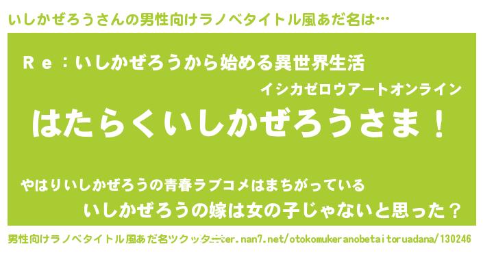 | 意味不明あだ名 | 『自称いしかぜろう』 |