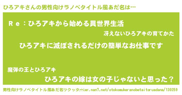 | 意味不明あだ名 | 『自称ひろアキ』『永久保存ひろアキ』 |