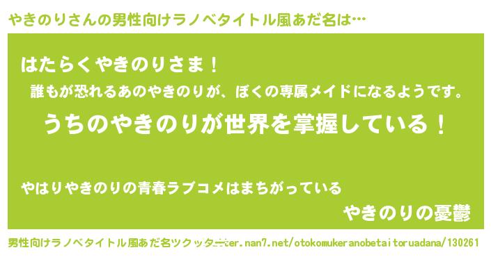 | ヘコむあだ名 | 『やきにー』『やきのり(苦笑)』 |