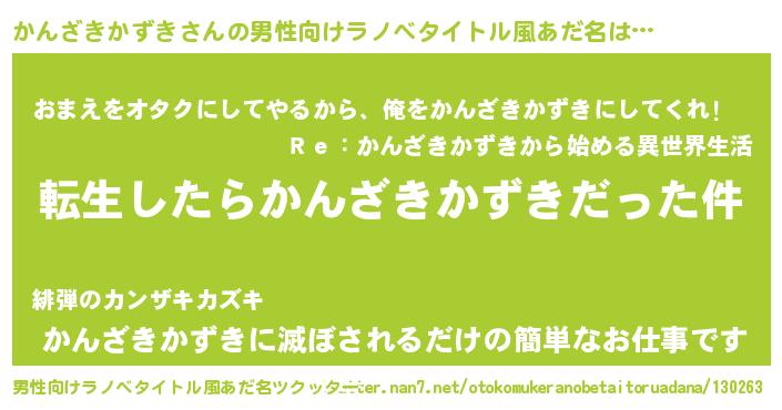 | 女子向けラノベタイトル風あだ名 | 『かんざきかずきの玉の輿計画!』 |