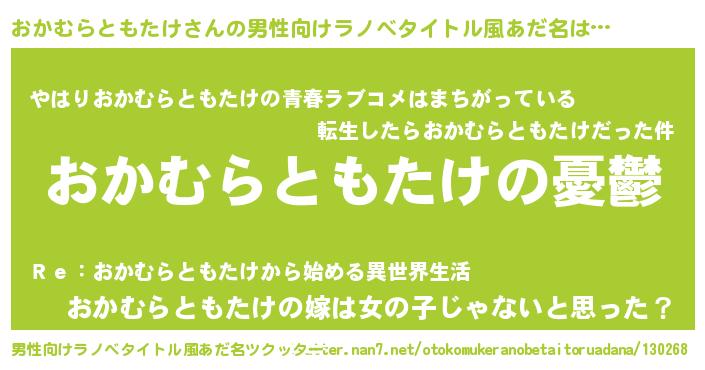 | ヒーロー風カッコイイあだ名 | 『スーパーオカムラトモタケ』 |