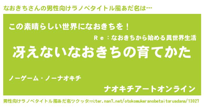 | 意味不明あだ名 | 『住所不定無職なおきち(65歳)』 |