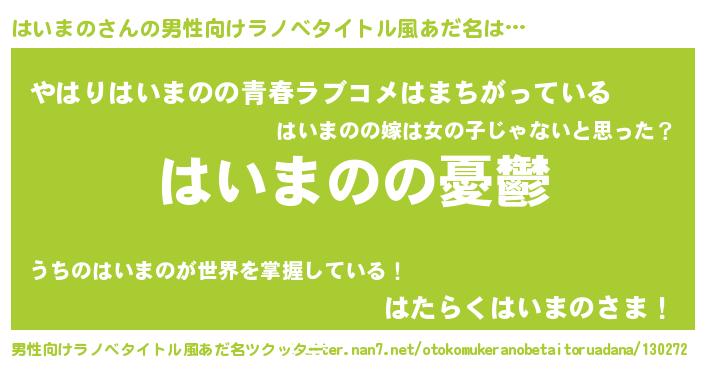 | 胡散臭い通販商品みたいなあだ名 | 『必ず成功する霊験あらたかなお札…その名も「はいまの」』 |
