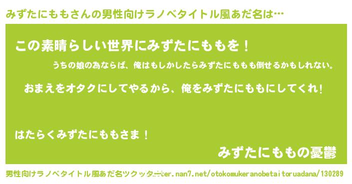 | 女子向けラノベタイトル風あだ名 | 『みずたにもも恋絵巻』 |