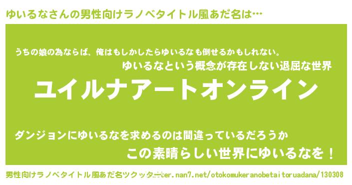 ゆいるなさんの男性向けラノベタイトル風あだ名をツクッター!