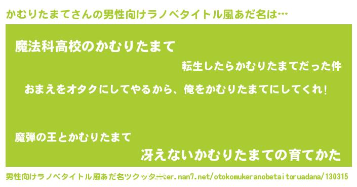 | ヘコむあだ名 | 『かむりたまて(遠い目)』『かむふぇ~』 |