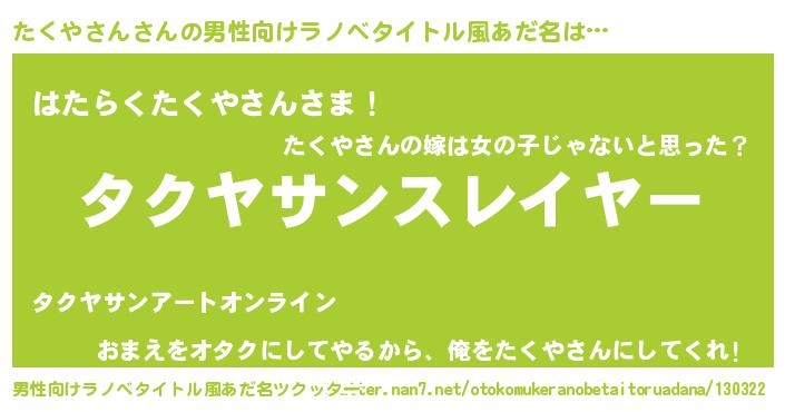 | 肩書あだ名 | 『たくやさん大将』『たくやさん助手』 |