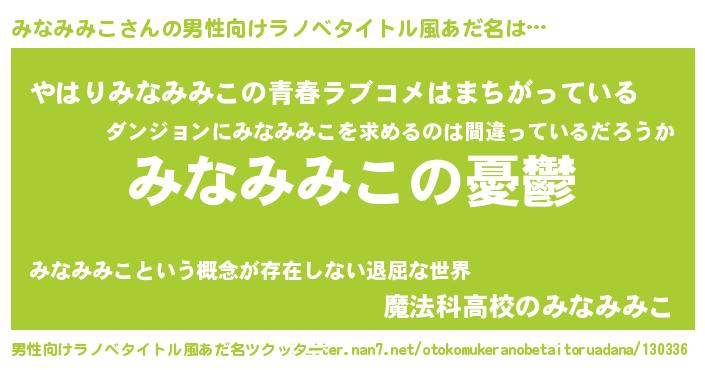 | 女子向けラノベタイトル風あだ名 | 『(仮)みなみみこのやんごとなき事情』 |
