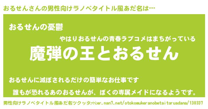 | 意味不明あだ名 | 『住所不定無職おるせん(53歳)』 |