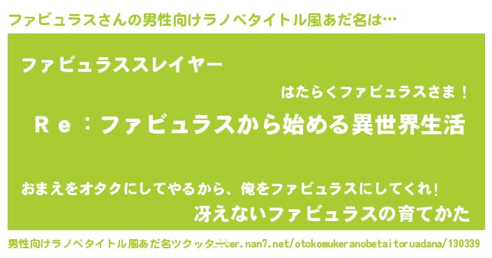 | ヘコむあだ名 | 『ファふぇ~』『ファビュラス(小並感)』 |