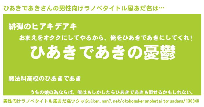 | 胡散臭い通販商品みたいなあだ名 | 『必ず成功するブレスレット…その名も「ひあきであき」』 |