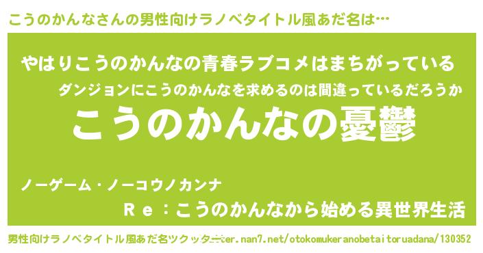 | 女子向けラノベタイトル風あだ名 | 『こうのかんな姫と円卓の騎士』 |