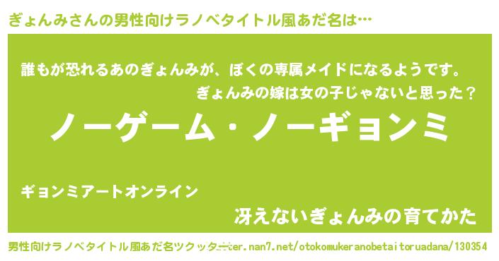 ぎょんみさんの男性向けラノベタイトル風あだ名をツクッター!