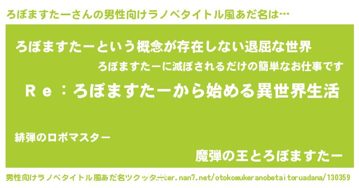 | 女子向けラノベタイトル風あだ名 | 『闇のろぼますたー』 |