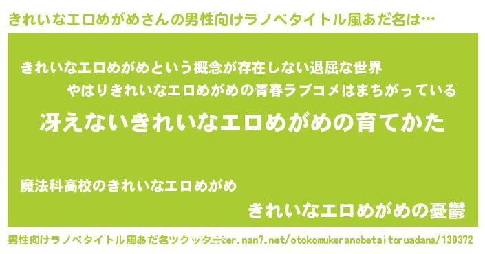 | 胡散臭い通販商品みたいなあだ名 | 『来世でも幸せになれる水素水…その名も「きれいなエロめがめ」』 |