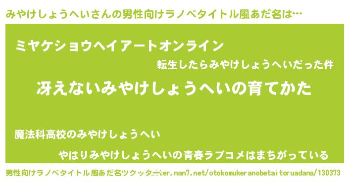 | 胡散臭い通販商品みたいなあだ名 | 『モテモテ間違いなし水晶球…その名も「みやけしょうへい」』 |