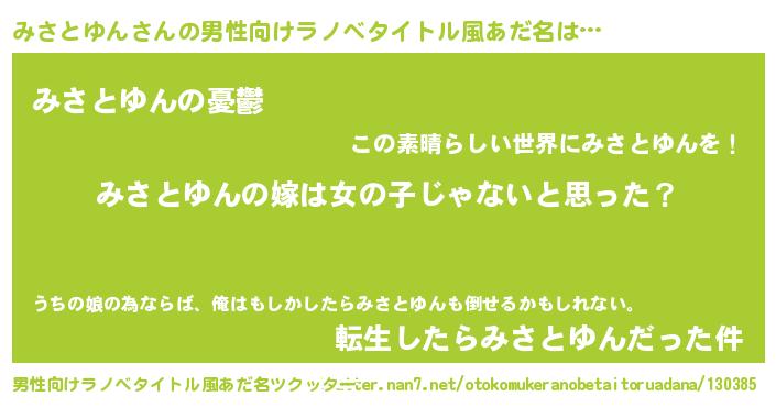 | 女子向けラノベタイトル風あだ名 | 『みさとゆん様がみてる』 |