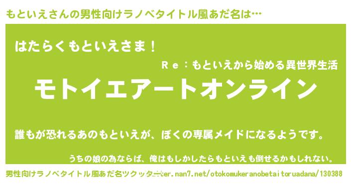 | 胡散臭い通販商品みたいなあだ名 | 『億万長者になれるブレスレット…その名も「もといえ」』 |