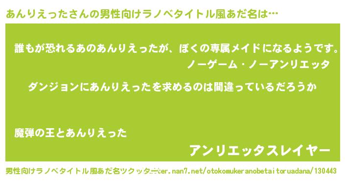 | 女子向けラノベタイトル風あだ名 | 『あんりえったは平凡を望む』 |