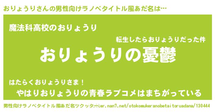 | 胡散臭い通販商品みたいなあだ名 | 『モテモテ間違いなしブレスレット…その名も「おりょうり」』 |