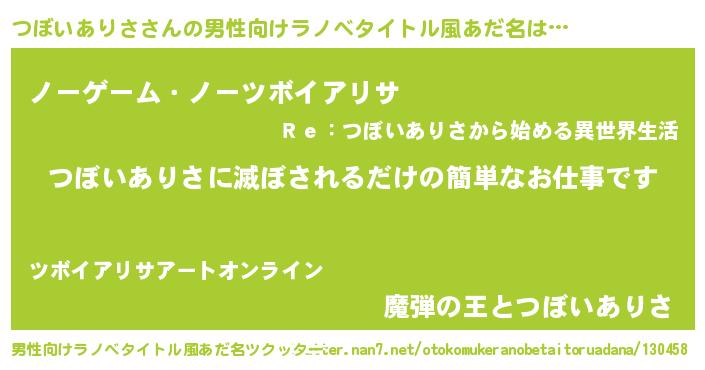 | 伝説のあだ名 | 『救世主となる占い師つぼいありさ』 |
