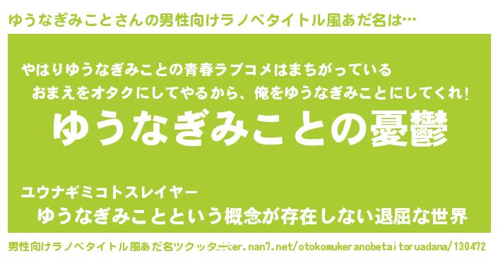 | 胡散臭い通販商品みたいなあだ名 | 『必ず成功する霊験あらたかなお札…その名も「ゆうなぎみこと」』 |