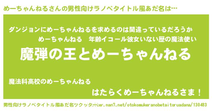 | 意味不明あだ名 | 『住所不定無職めーちゃんねる(14歳)』 |
