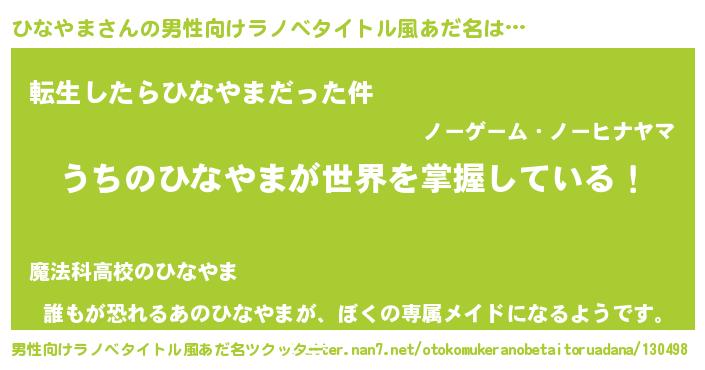 | ヒーロー風カッコイイあだ名 | 『ネオヒナヤマ』『愛の使者ひなやま』 |
