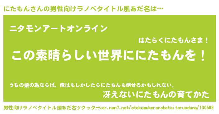 | 胡散臭い通販商品みたいなあだ名 | 『あなたにだけ特別に提供する限定10本のレアな日本酒…その名も「にたもん」』 |