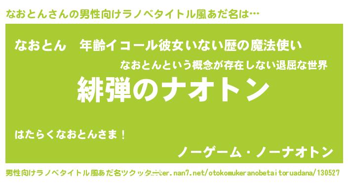 | ヘコむあだ名 | 『なおとん(爆)』『なおを』『豆乳』 |