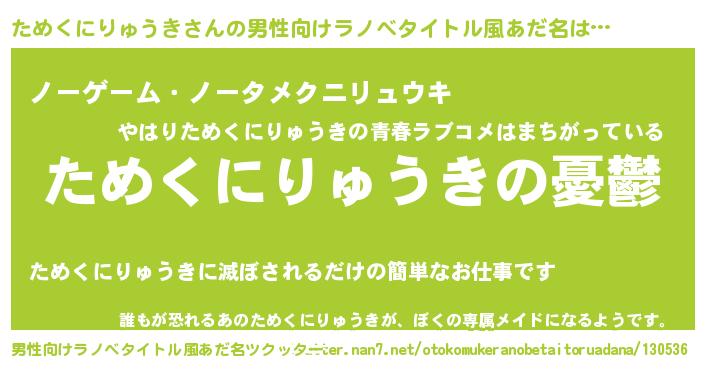| 胡散臭い通販商品みたいなあだ名 | 『モテモテ間違いなしブレスレット…その名も「ためくにりゅうき」』 |