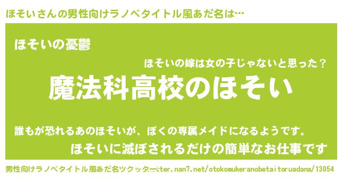 | 意味不明あだ名 | 『自称ほそい』『ペロリンほそい』 |