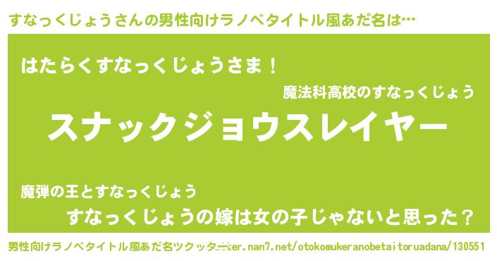 | 胡散臭い通販商品みたいなあだ名 | 『信頼と実績のネックレス…その名も「すなっくじょう」』 |