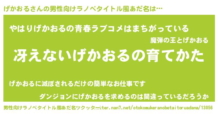 げかおるさんの男性向けラノベタイトル風あだ名をツクッター!