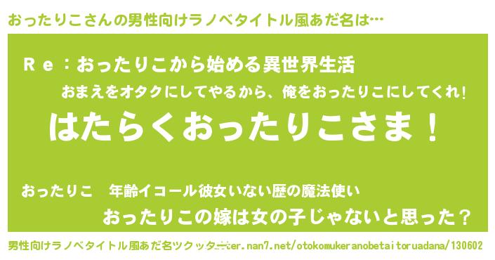 | 意味不明あだ名 | 『自称おったりこ』『ペロリンおったりこ』 |