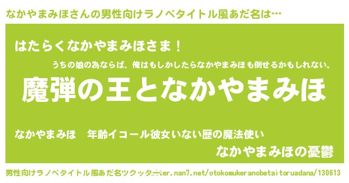 | 意味不明あだ名 | 『住所不定無職なかやまみほ(2歳)』 |