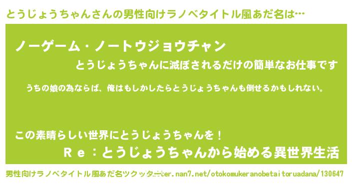 | ファンタジー風あだ名 | 『エターナルトウジョウチャンー』 |
