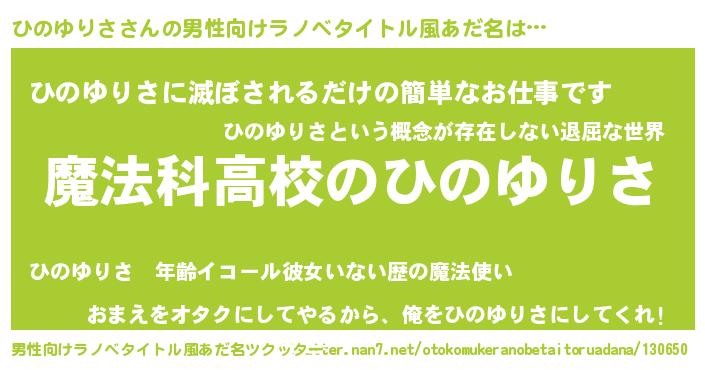 | 女子向けラノベタイトル風あだ名 | 『ひのゆりさアンティーク』 |