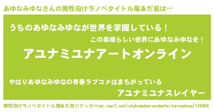 | 胡散臭い通販商品みたいなあだ名 | 『億万長者になれる霊験あらたかなお札…その名も「あゆなみゆな」』 |
