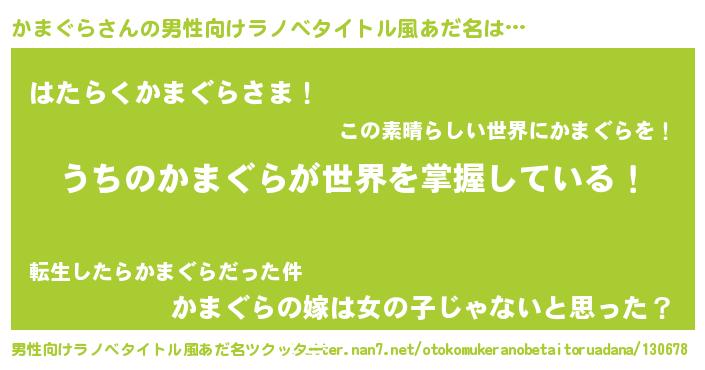 | 意味不明あだ名 | 『とにかく怪しいかまぐら』 |