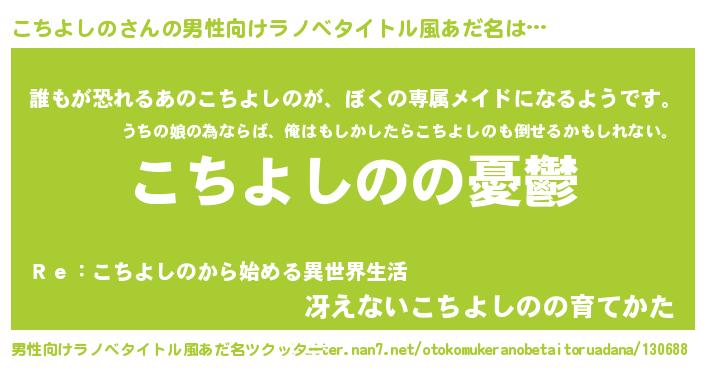 | 女子向けラノベタイトル風あだ名 | 『こちよしの姫と円卓の騎士』 |